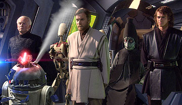 Episode 2 was released on DVD November 12th 2002 and on Blu-Ray disc in 2011. Revenge of the Sith - May 2005As with Episodes One and Two, the theater lines were long, and the buildup was huge. Marketing was everywhere, including a large number of items in the grocery store. I saw Episode 3 at its first midnight screening at the local Pacific Theaters (since then it has been converted into an Arclight Cinema). I left my first screening of Episode 3 with mixed emotions. I knew this: it was indeed better than Episodes One and Two. But was it this amazing piece of cinema that most reviews were making it out to be? I didn't believe so. All I could see was missed potential everywhere, which saddened me. As I did with Episode 2, here is the good and bad:.